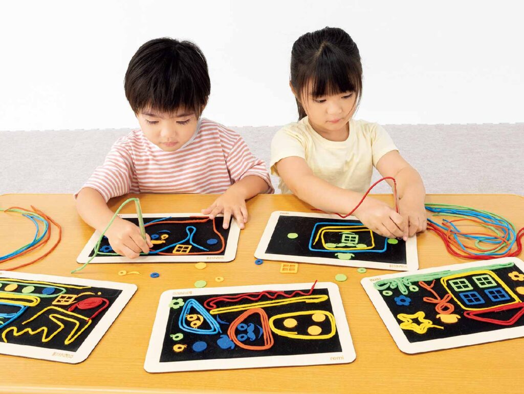ひもやフェルトパーツを貼り付けて遊ぶユニークなお絵かきセット