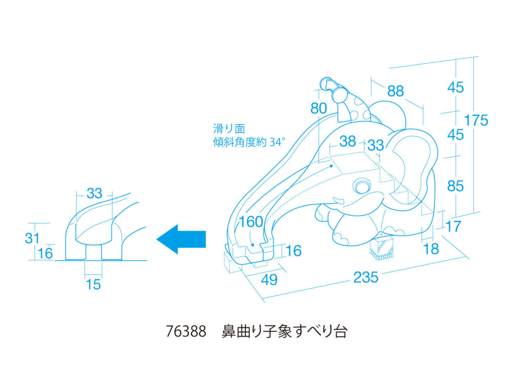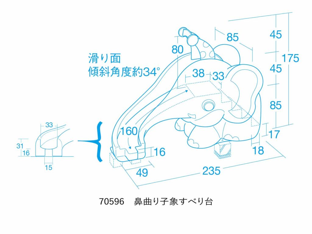 ロングセラーの「鼻曲がり子象すべり台」が、より安心形状になってリニューアルしました。