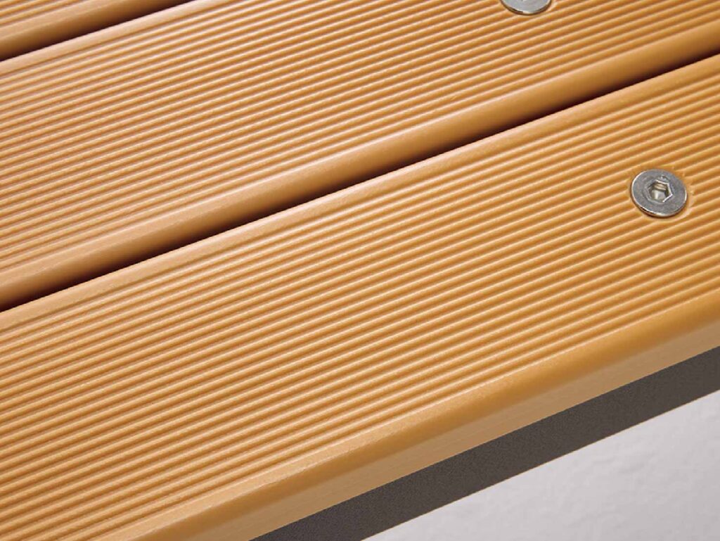 耐水性、耐候性に優れた材質を使用した丈夫な木調ベンチ